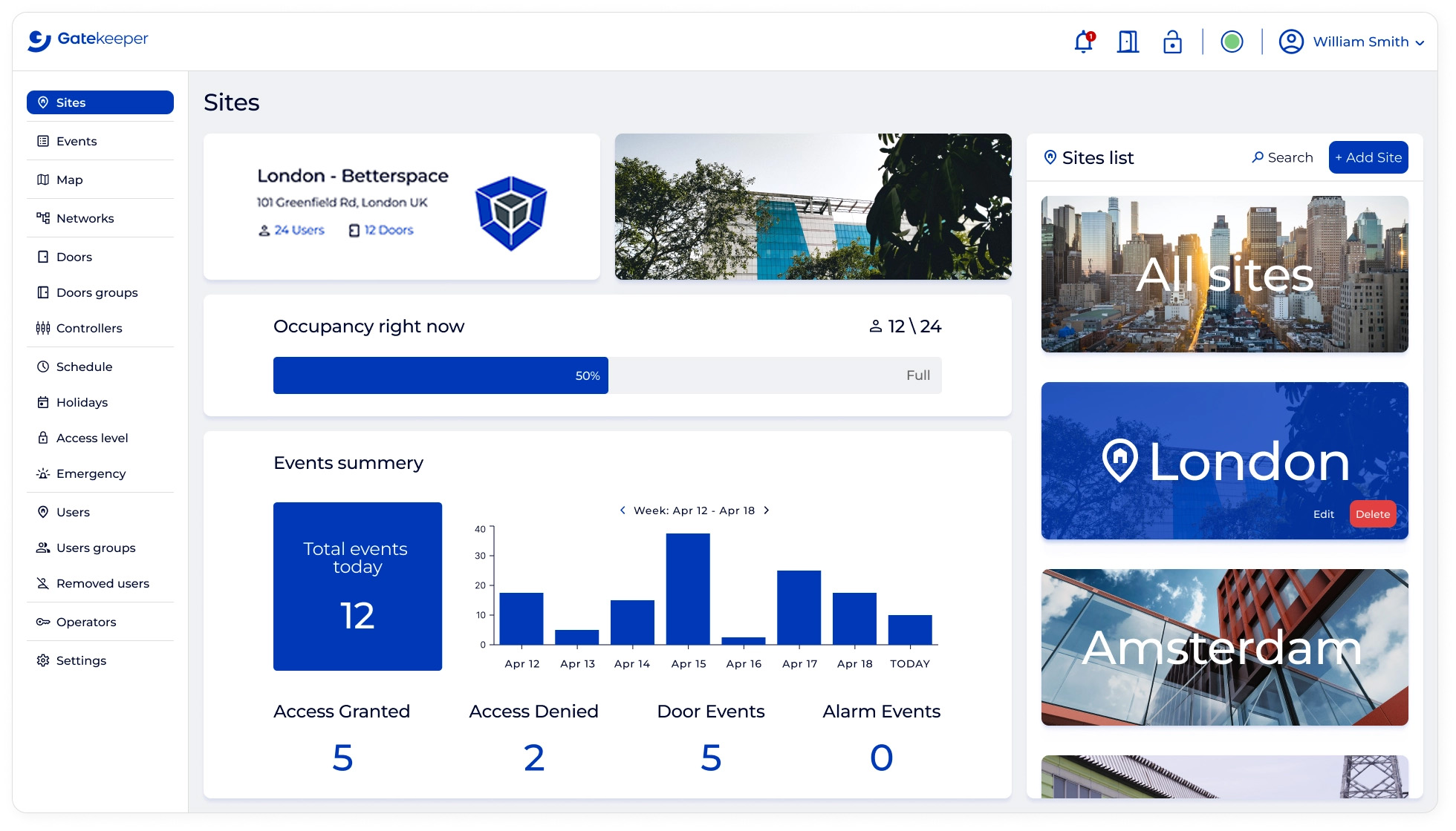 Our platform is designed to deliver optimal functionality for access control solutions. Gatekeeper OS+ provides a new task-oriented approach, allowing you to manage people, sites, and events on any scale with minimum effort